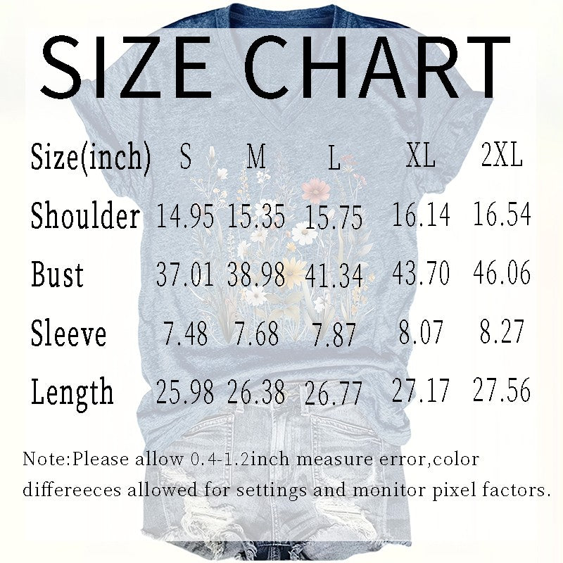 A boho-inspired V-neck tee adorned with delicate wildflower graphics. Its loose, relaxed fit and breathable fabric make it perfect for layering or wearing solo for a free-spirited look.